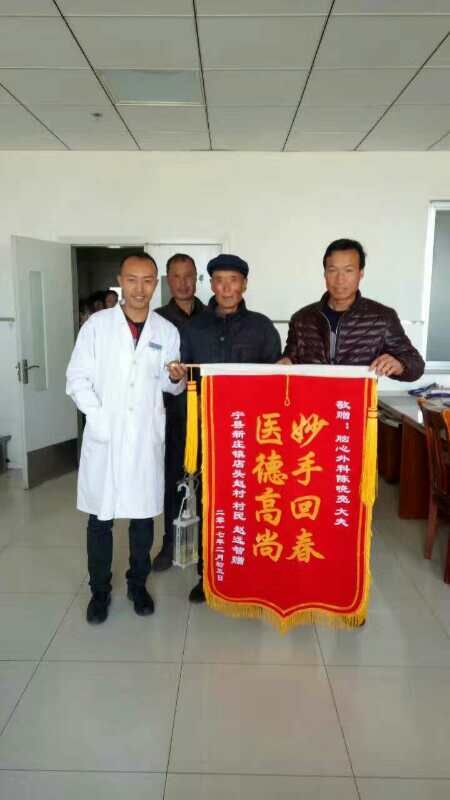 2017年的年味还未退去,市人民医院的病人如潮水一般涌来。2月9日15:30胸心外科送来一位70岁的老人。这位老人咳嗽时突然出现胸闷、气短、呼吸困难、面部肿胀、全身皮肤紧绷,因儿子访亲,家中无人,情急之下,老伴找来邻居送往我院胸心外科,值班大夫见此情景,初步诊断为自发性肺大泡破裂导致张力性气胸,如不即刻处理会有生命危险。医生护士迅速组织施救。在换药室里医生和护士一边高流量吸氧,一边用粗针头穿刺排气减压,并在前胸进行多处切开减压,在呼吸困难稍有改善的情况下,行右侧胸腔闭式引流术,放出大量积气、积血,病情得到明显改善。这时老人强忍着疼痛说:“大夫,我的病不住院能好吗?”值班医生和护士这才从紧张施救中回过神来,方知还没办理住院手续。医护人员一番耐心解释劝说,老人终于同意住院了。经过几天的胸腔持续负压引流,老人的胸廓得以复张,于2月21日平安出院。出院时老人用颤抖的声音说:“谢谢,谢谢!我是宁县的一位老百姓,这条命是你们胸心外科给的,要不是你们积极救治,今天不知我在哪里啊。我要给你们送一面锦旗,以表我老汉的心意!”